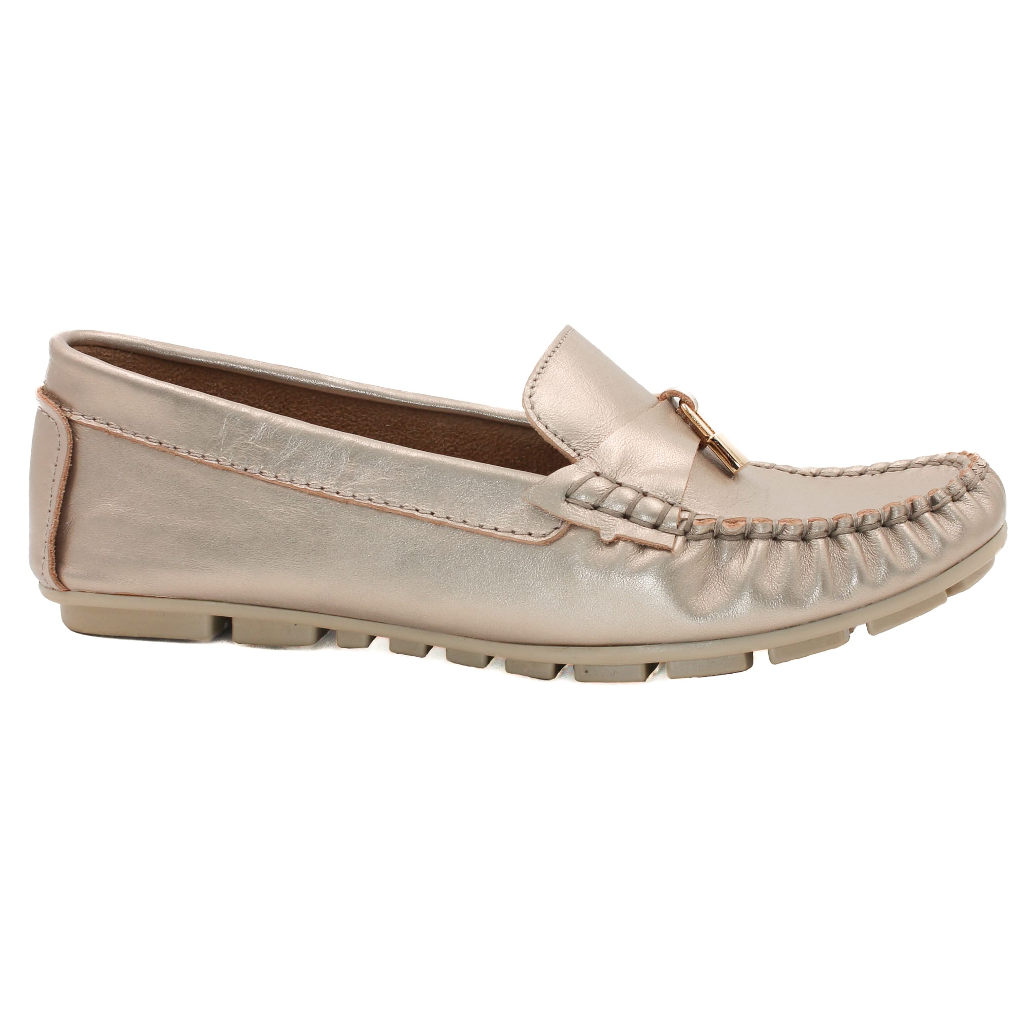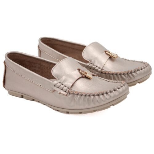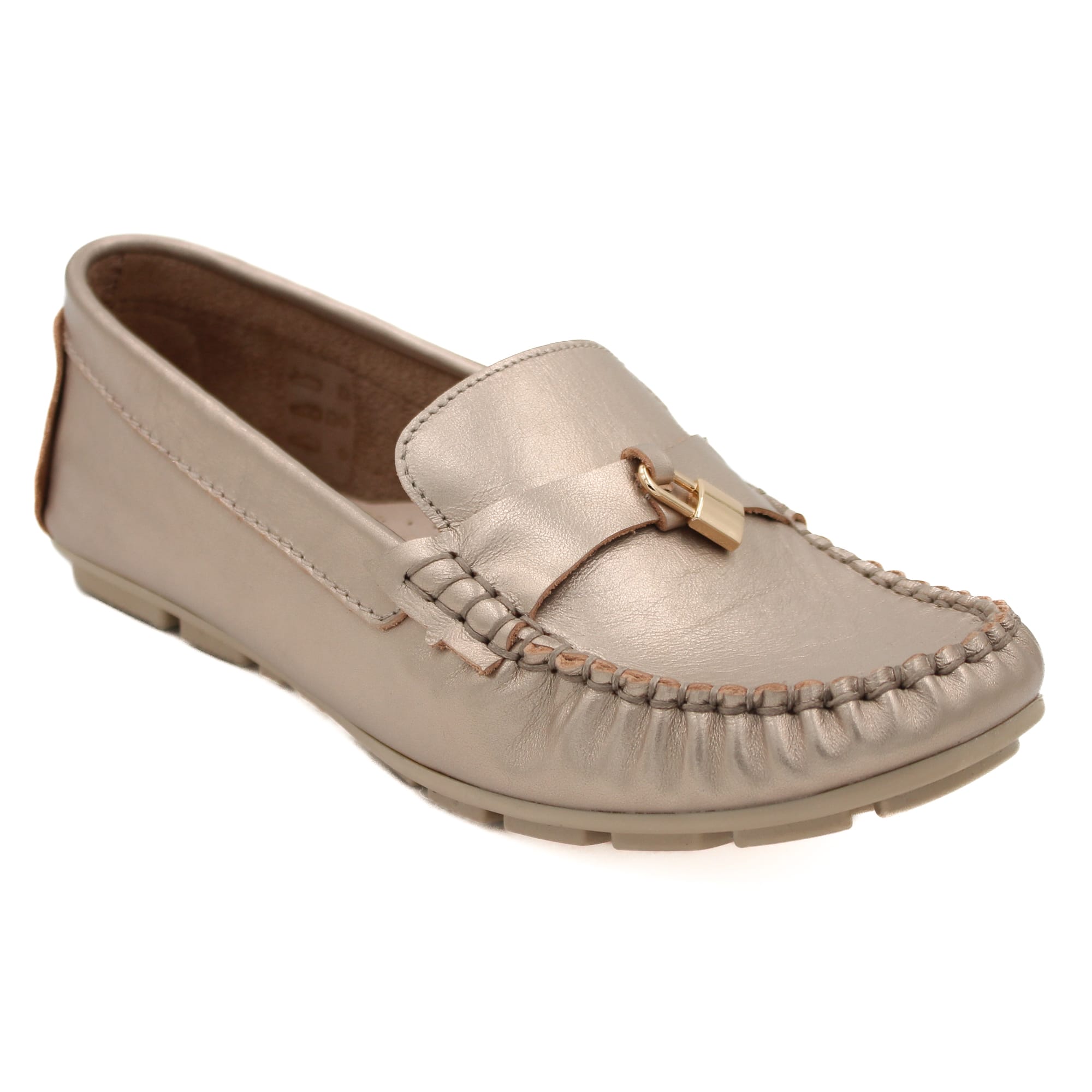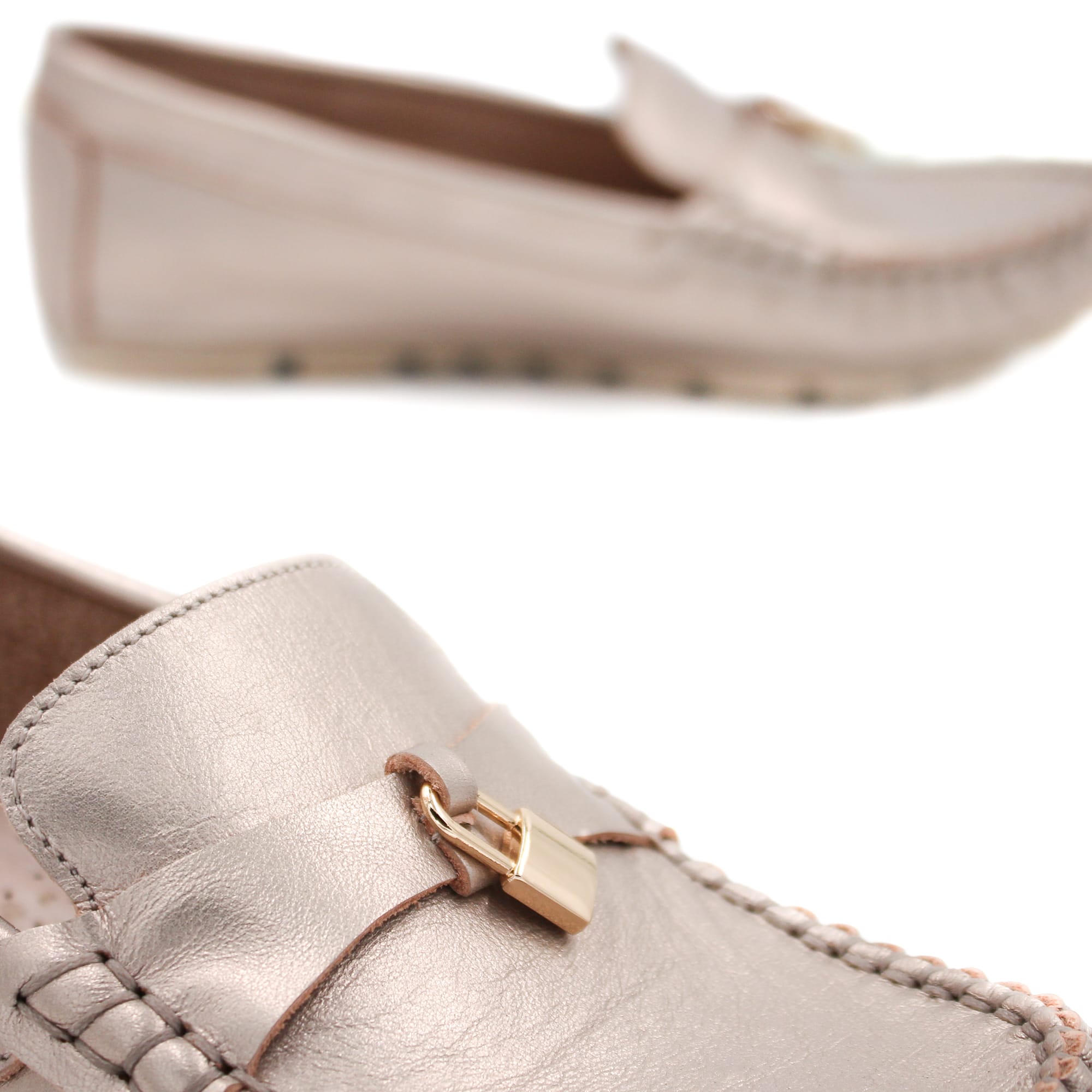 Model Lamanti 1099/188 to mokasyny stworzone z myślą o codziennym komforcie i swobodnym stylu. Cholewka w odcieniu szampańskiego złota nadaje obuwiu subtelnego blasku, który pięknie komponuje się z jasnymi, wiosenno-letnimi stylizacjami, ale równie dobrze przełamuje klasyczne zestawy w neutralnych kolorach.