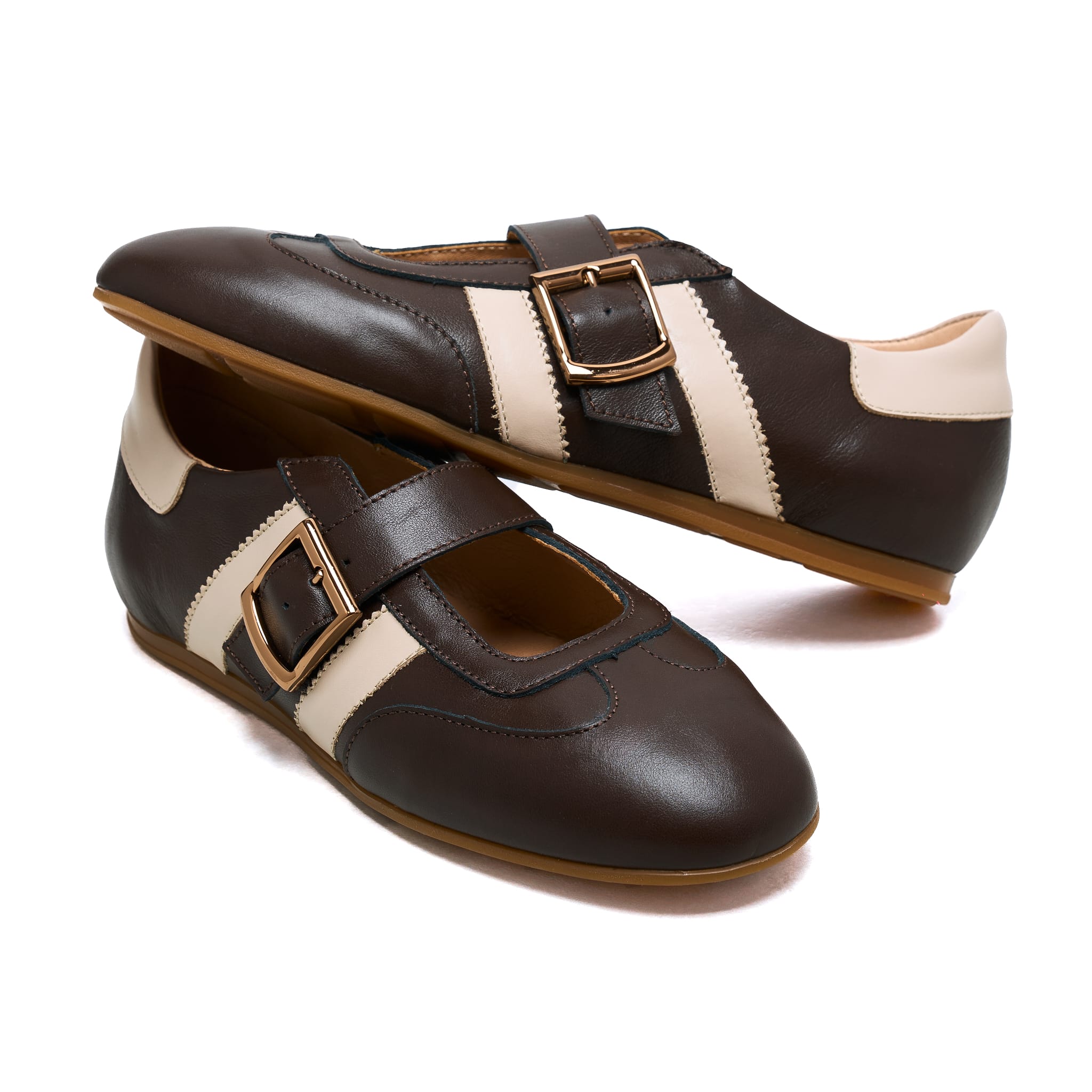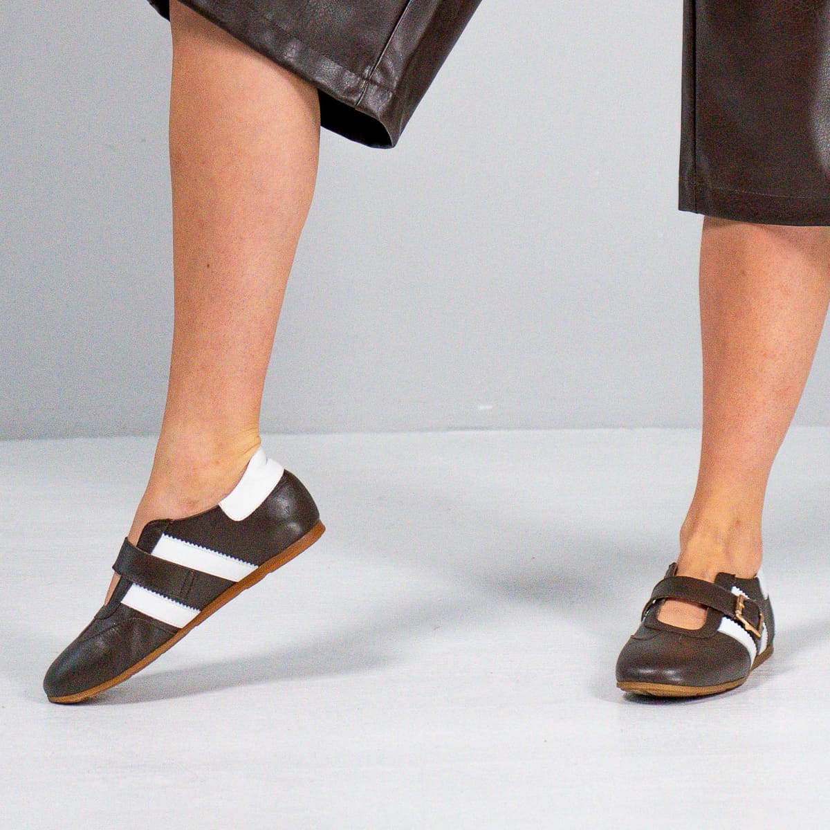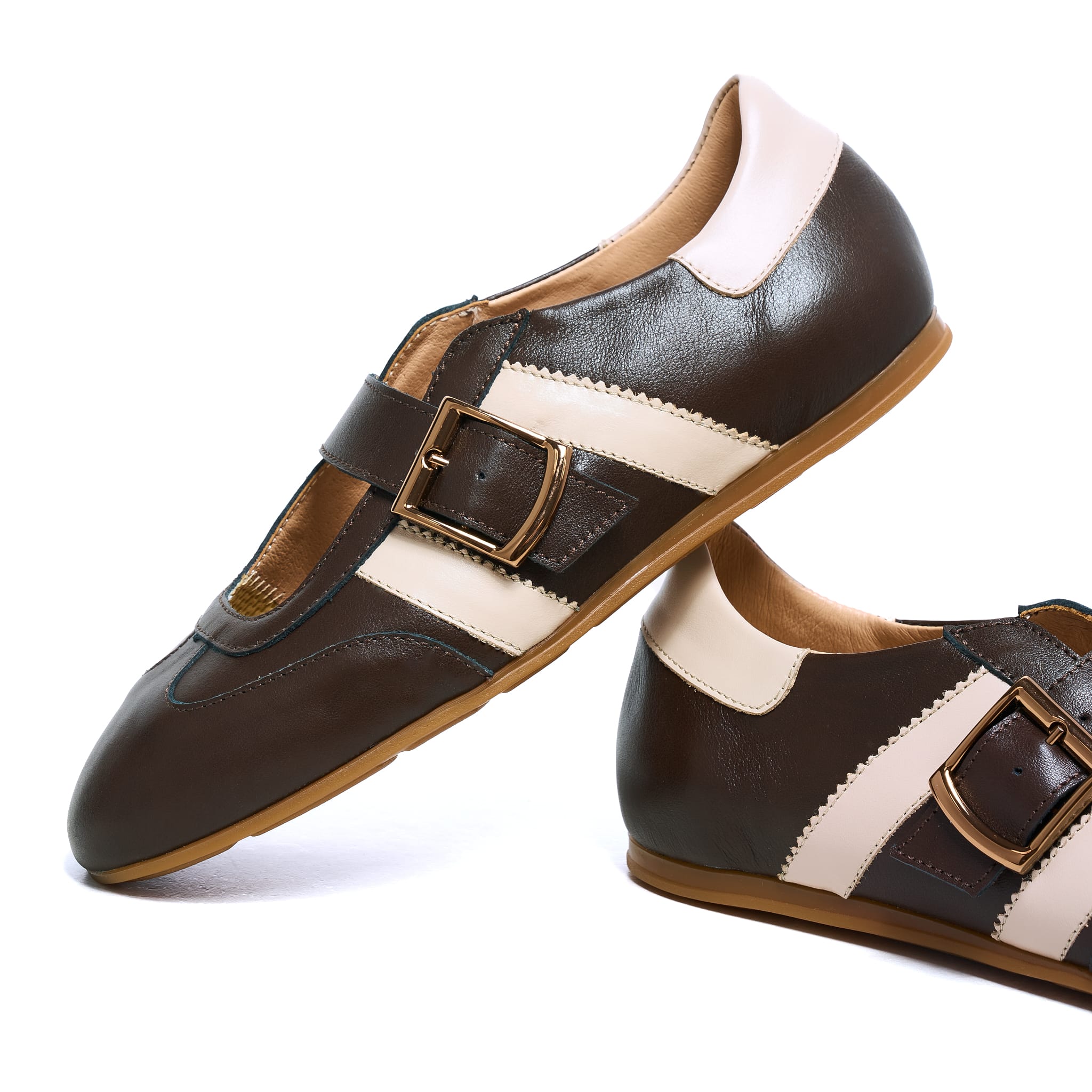 Model La’Samba został wykonany z wysokiej jakości naturalnej skóry licowej, która wyróżnia się trwałością, estetycznym wykończeniem oraz odpornością na codzienne użytkowanie. Czekoladowy brąz zestawiony z białymi wstawkami nadaje obuwiu wyrazisty, a jednocześnie harmonijny charakter. To propozycja dla kobiet ceniących klasyczne fasony w nowoczesnym, nieco retro wydaniu.