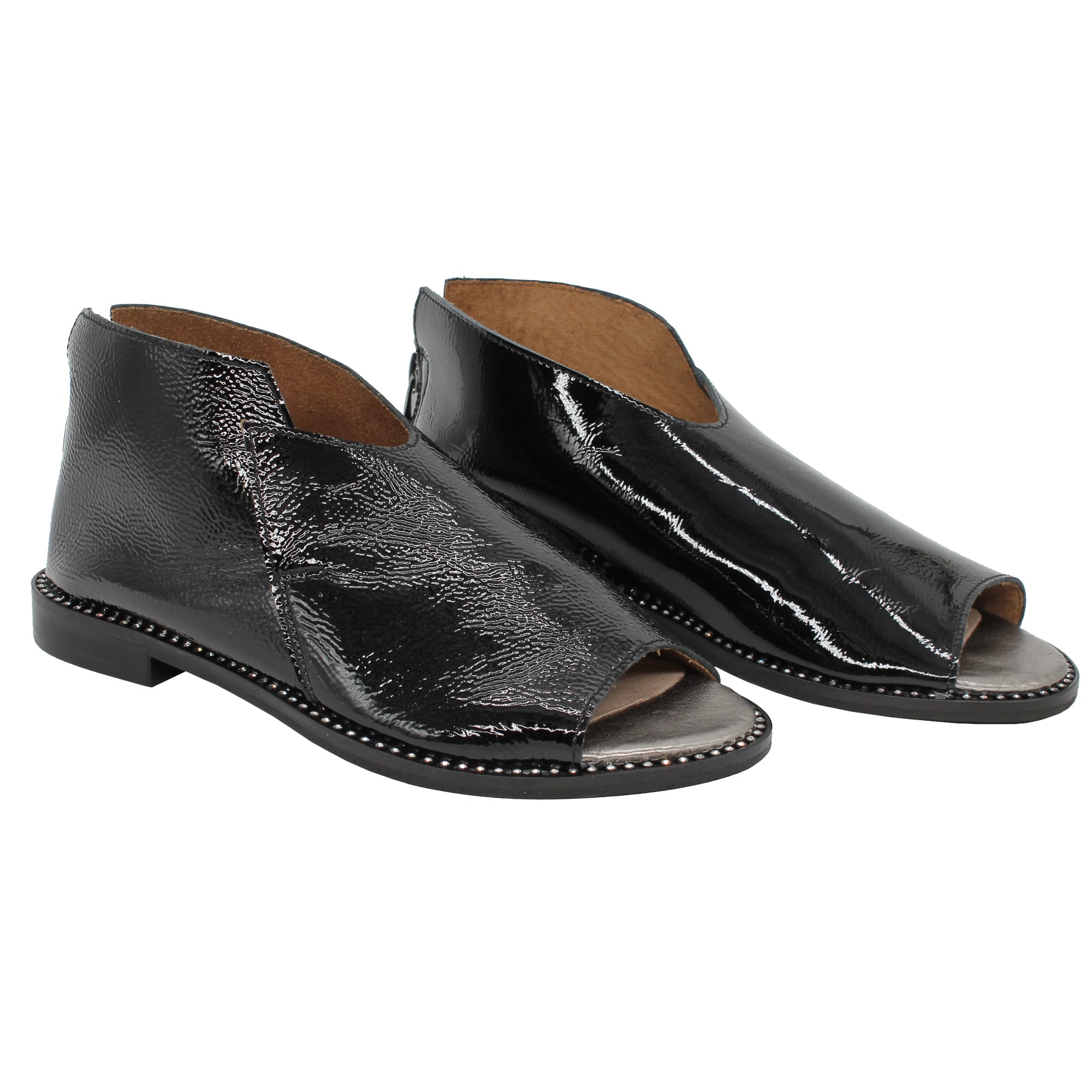 Skórzane sandały Lamanti w czarnym, lakierowanym wydaniu